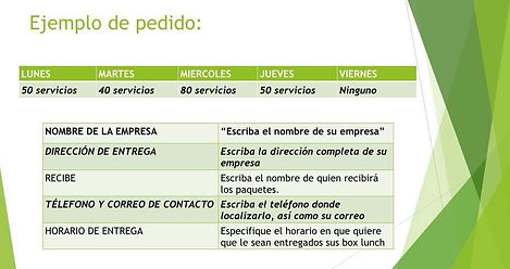 2- Llena el formato de pedido donde nos indicarás el número de "Box Lunch" que quieres por día, horario de entrega y dirección.